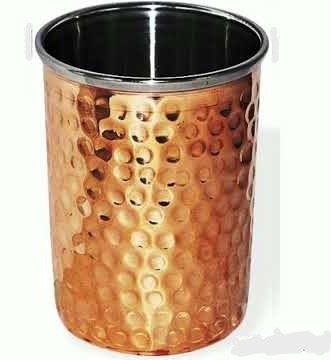 Hammered design sklenice s vnější měděnou vrstvou a vnitřní ocelovou vrstvou.